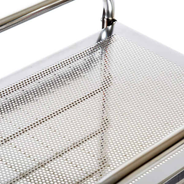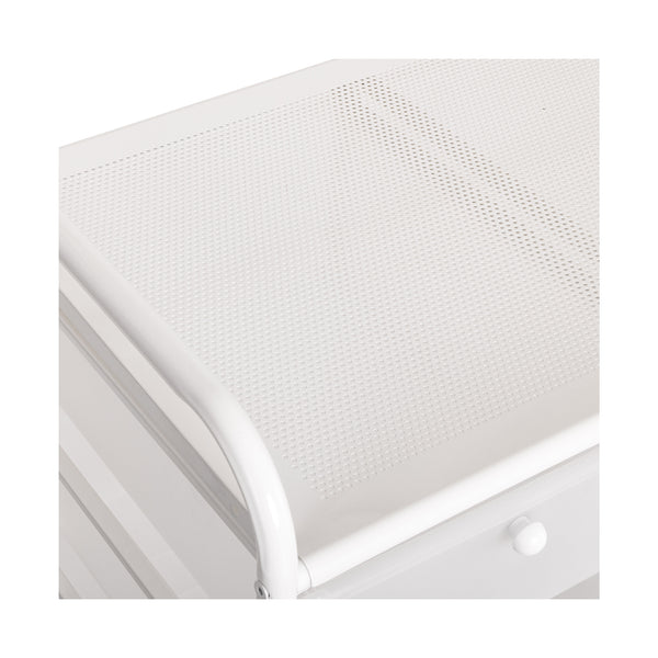 - Tubular steel frame with perforated top shelf (23.25" W x 15.25" D x 0.625" H)