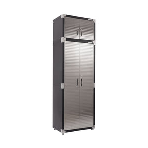• Total weight capacity: 600 lb. (150 lb. per shelf) base cabinet, 300 lb. stacking top cabinet