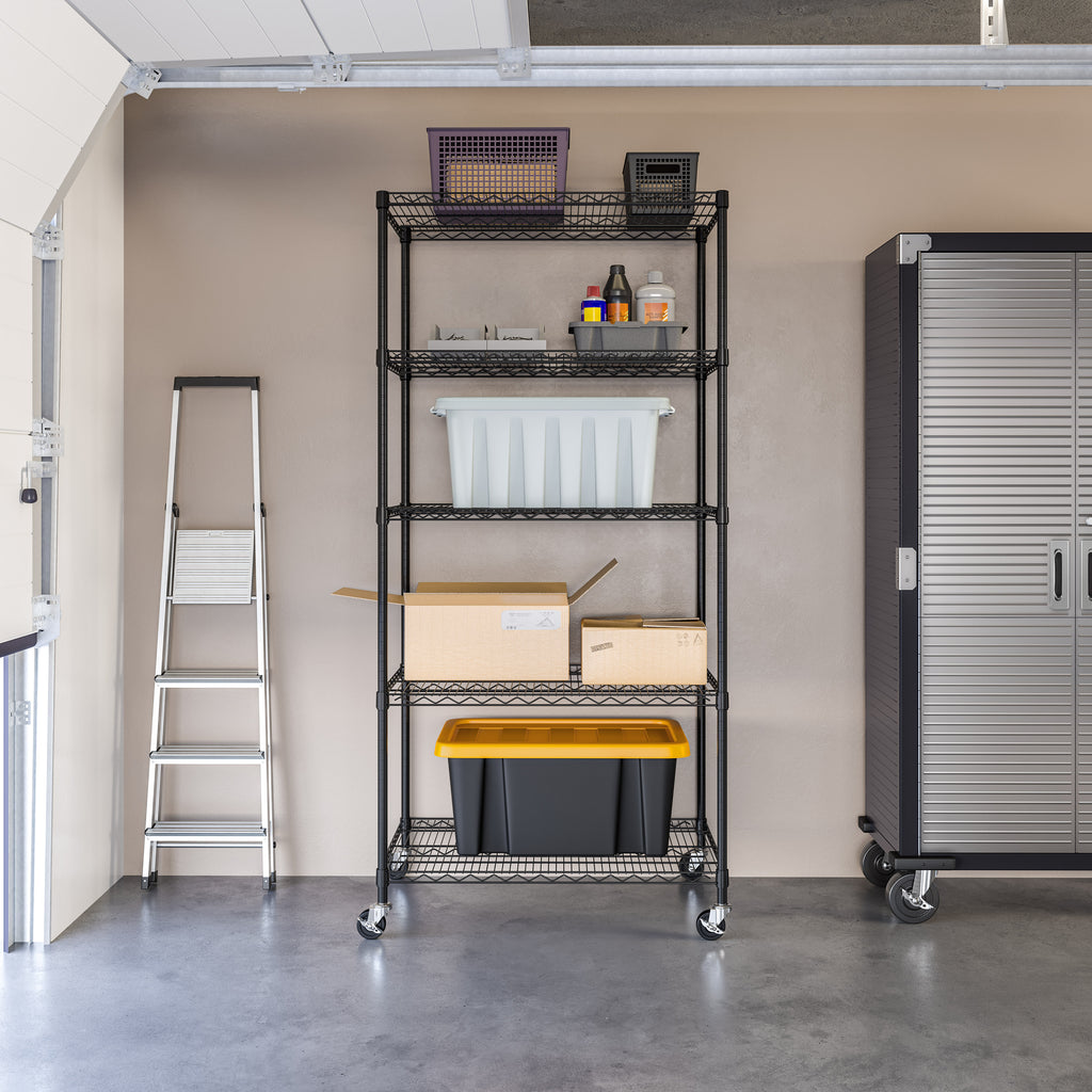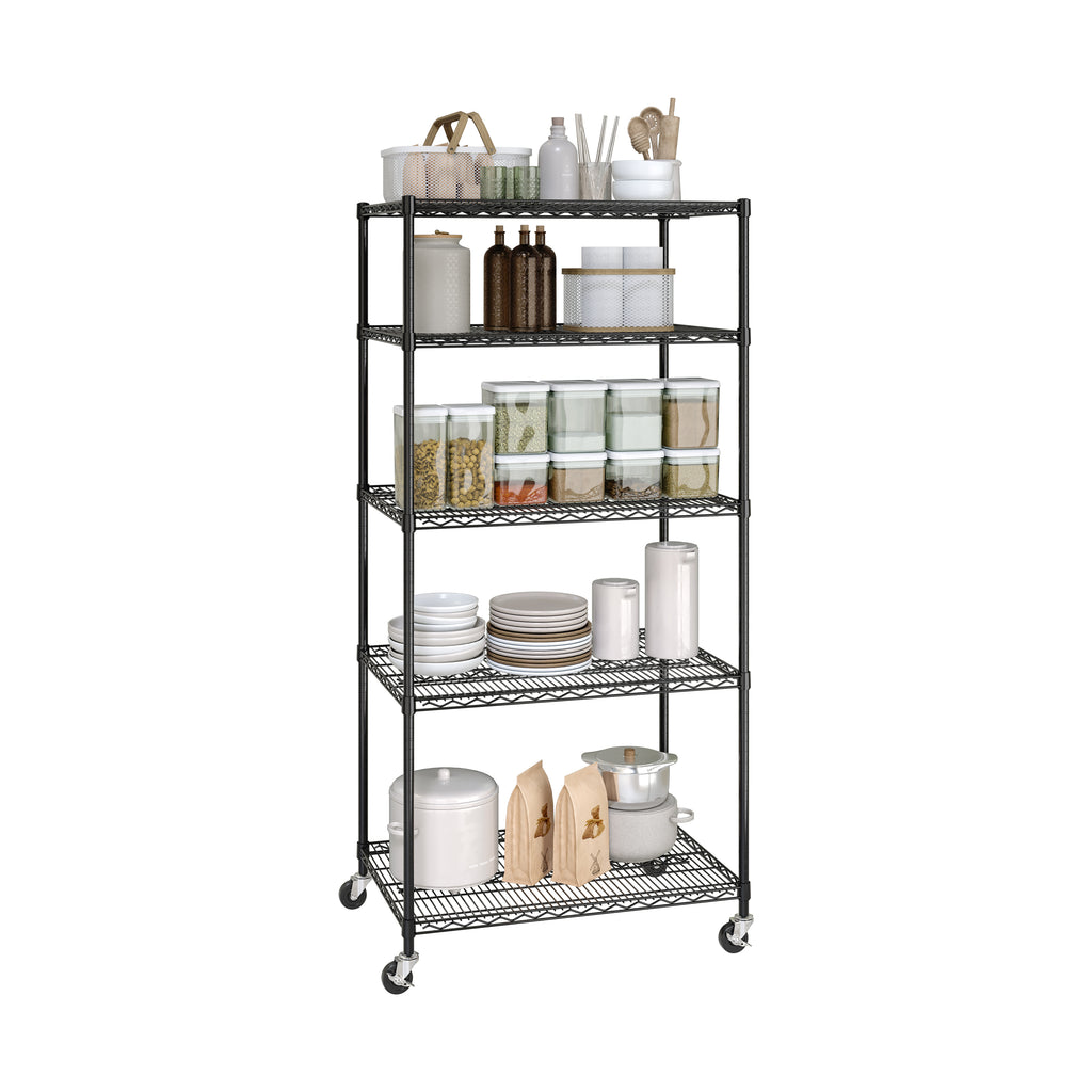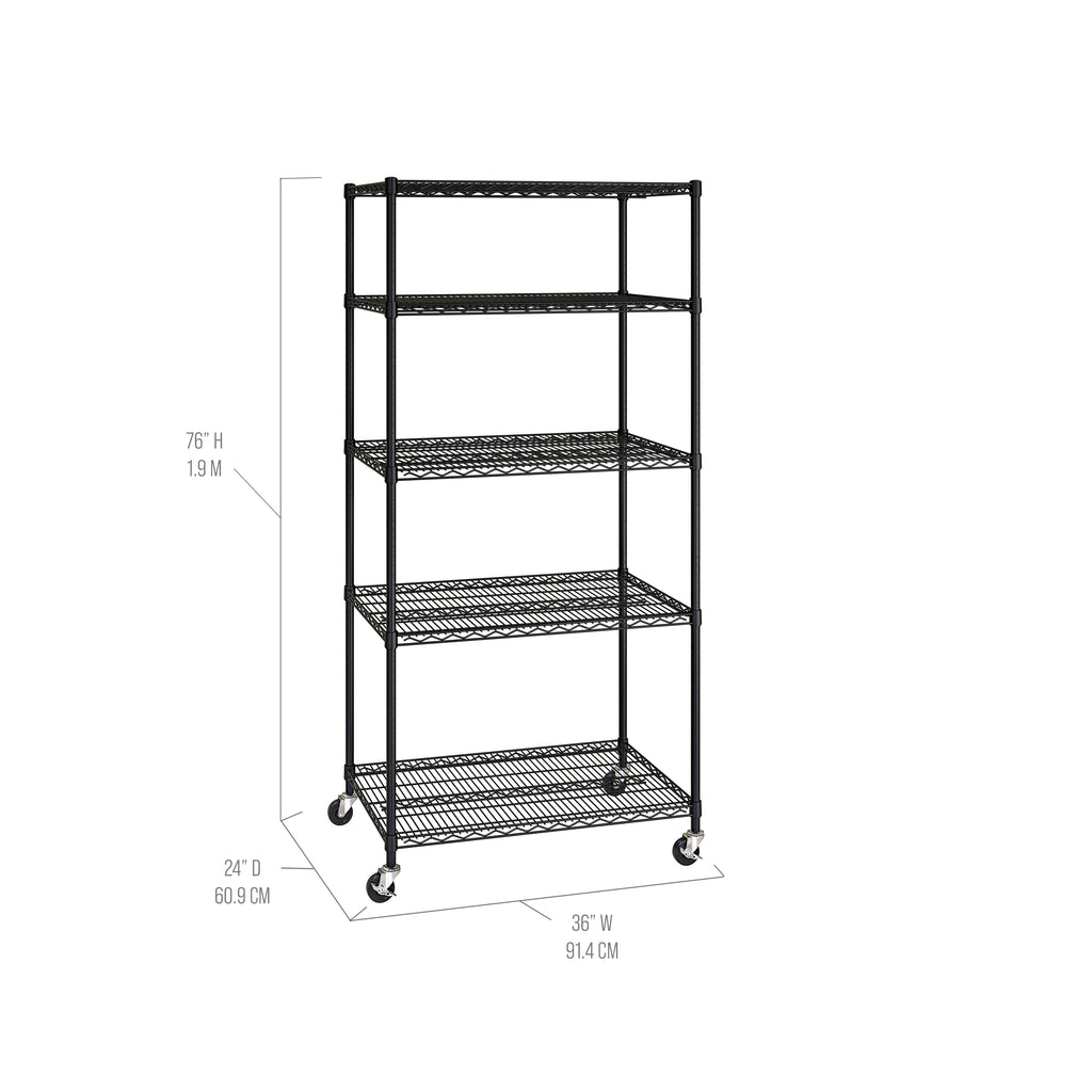 - 5 heavy-duty steel wire shelves - height adjustable at 1" increments