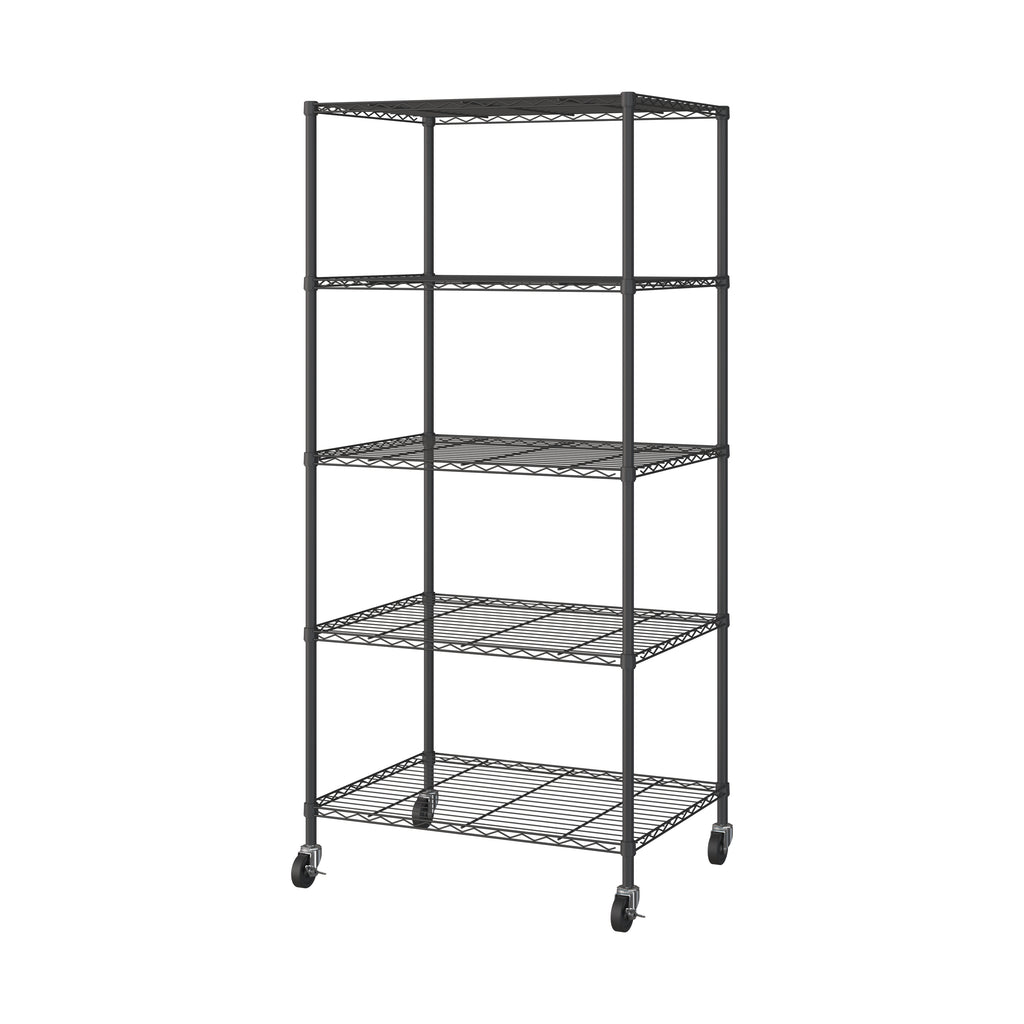 • 5 heavy-duty steel wire shelves (25" W x 33" D)