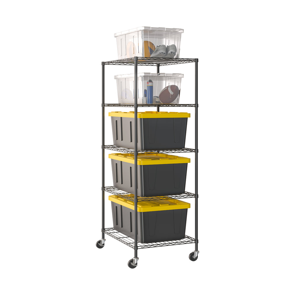 • Steel wire shelf is compatible with 27-gallon storage totes (20.6" W x 30.6" D x 14.3" H)