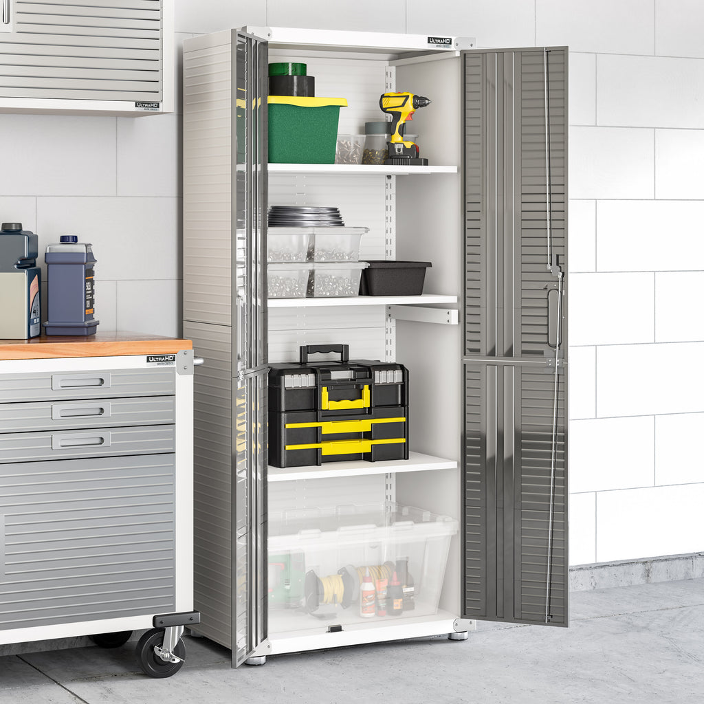 - Total weight capacity: 600 lb. (150 lb. per shelf)