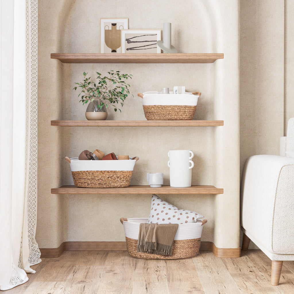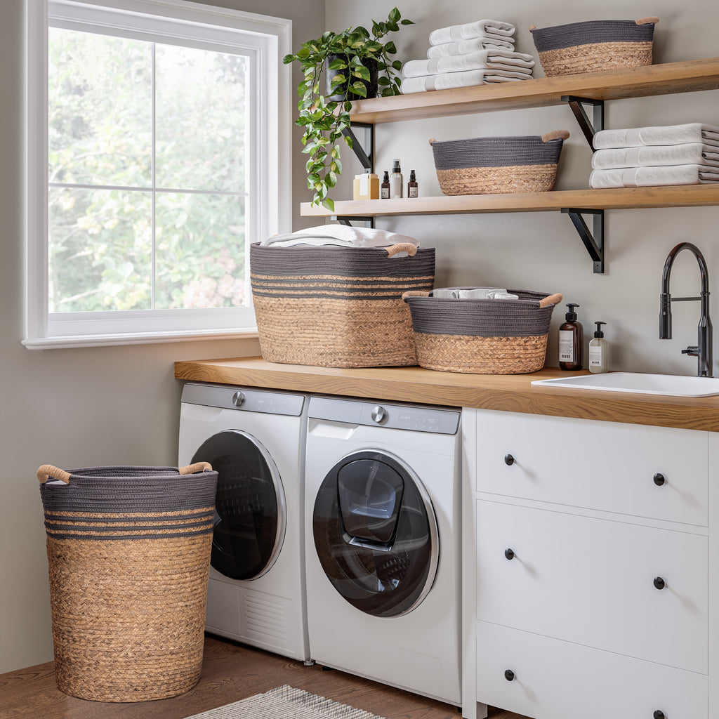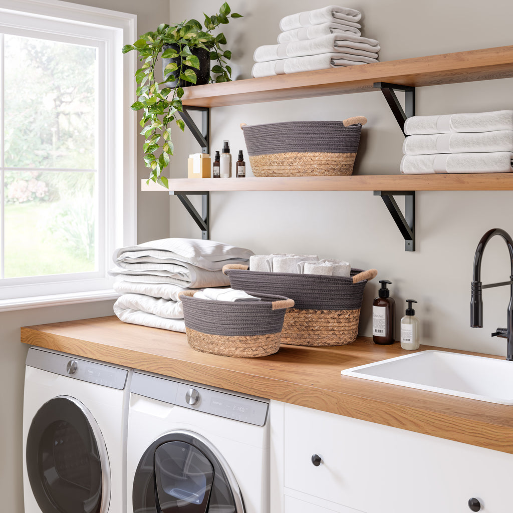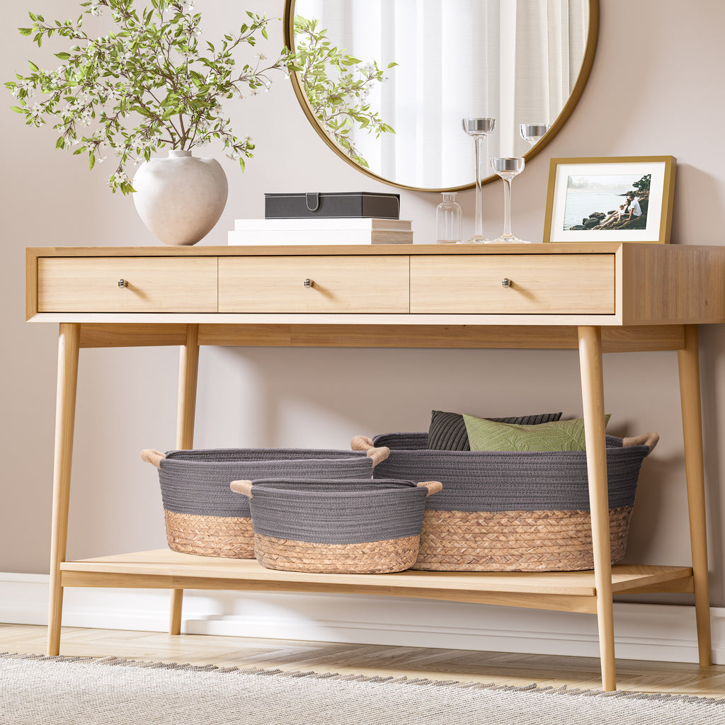 3-Piece Natural Water Hyacinth and Rope Handwoven Basket Set