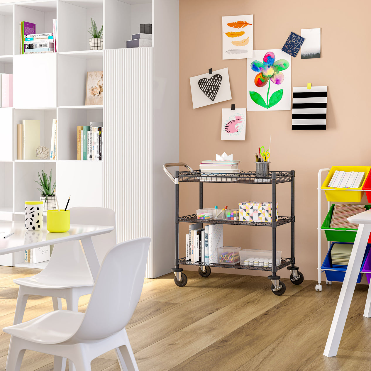 Utility cart in arts and crafts room