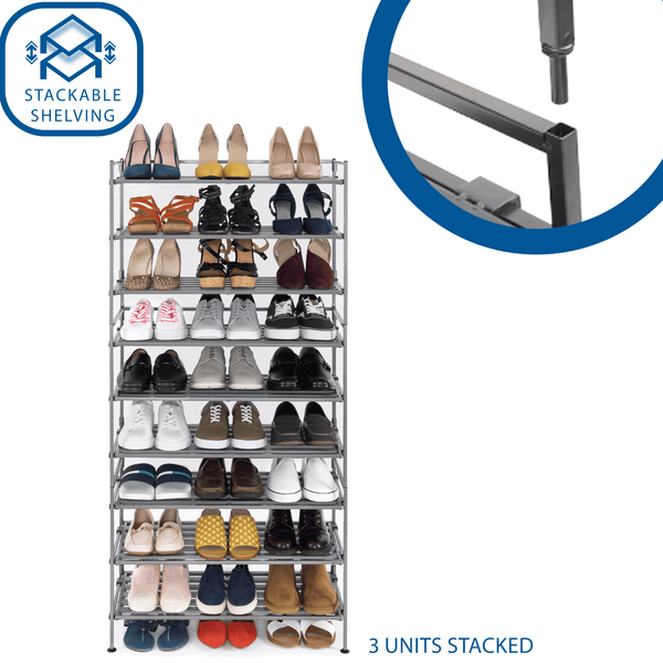 • Stacks only with 3-Tier Resin Slat Shoe Racks (model #: SHE15882/SHE15930/SHE15939)