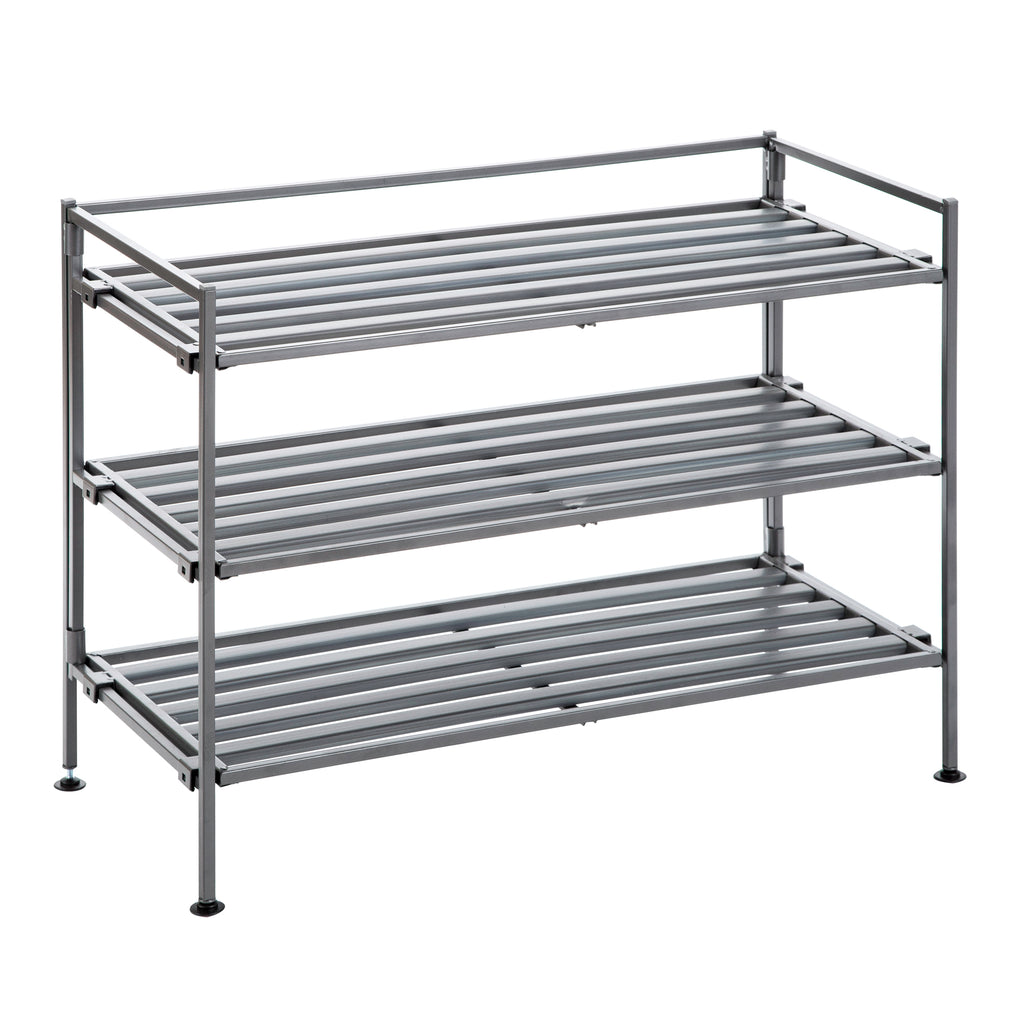 3 ash gray shoe racks stacked