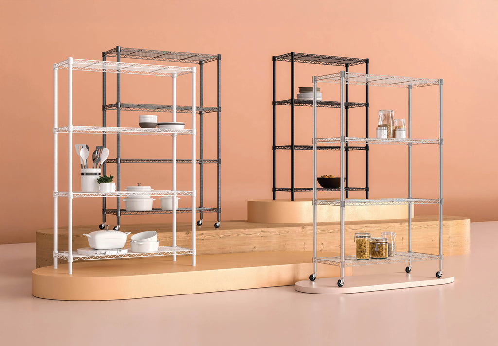 • 4 heavy-duty steel wire shelves - height adjustable at 1" increments