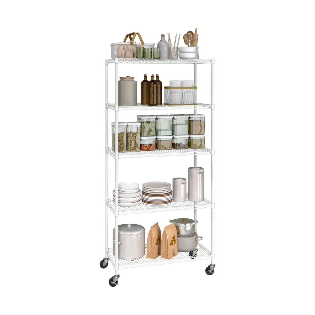 - 5 heavy-duty steel wire shelves - height adjustable at 1" increments
