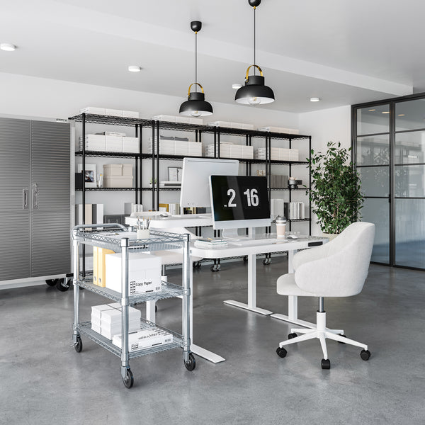- 2 heavy-duty steel wire shelves (adjustable at 1" increments)