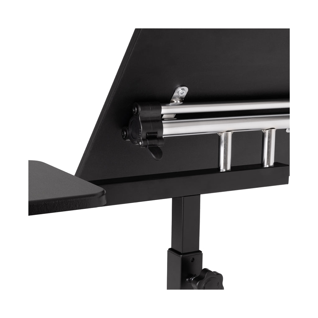- Tilting tabletop allows you to work in comfort while writing, drawing, or using a laptop