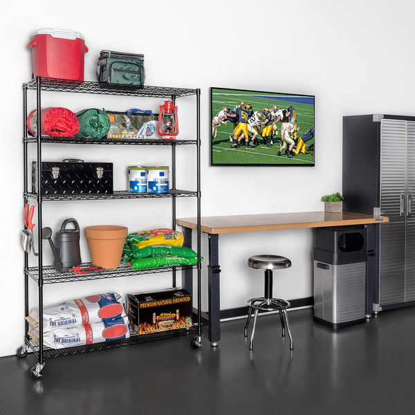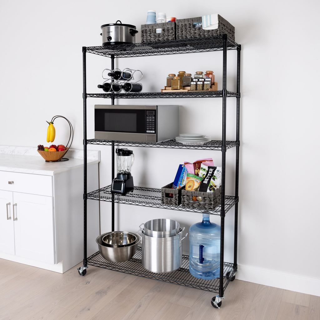 • 5 heavy-duty steel wire shelves - height adjustable at 1" increments