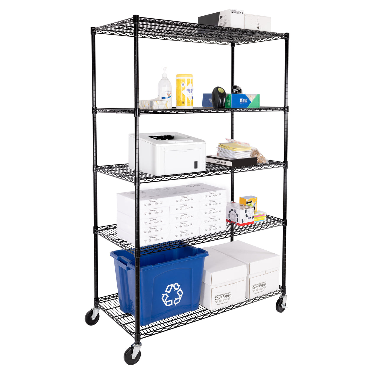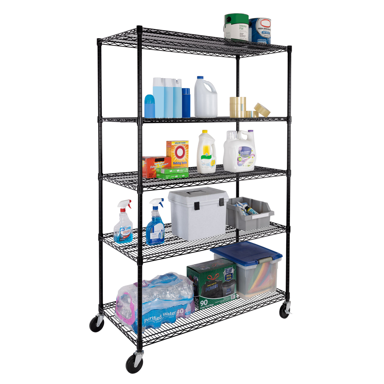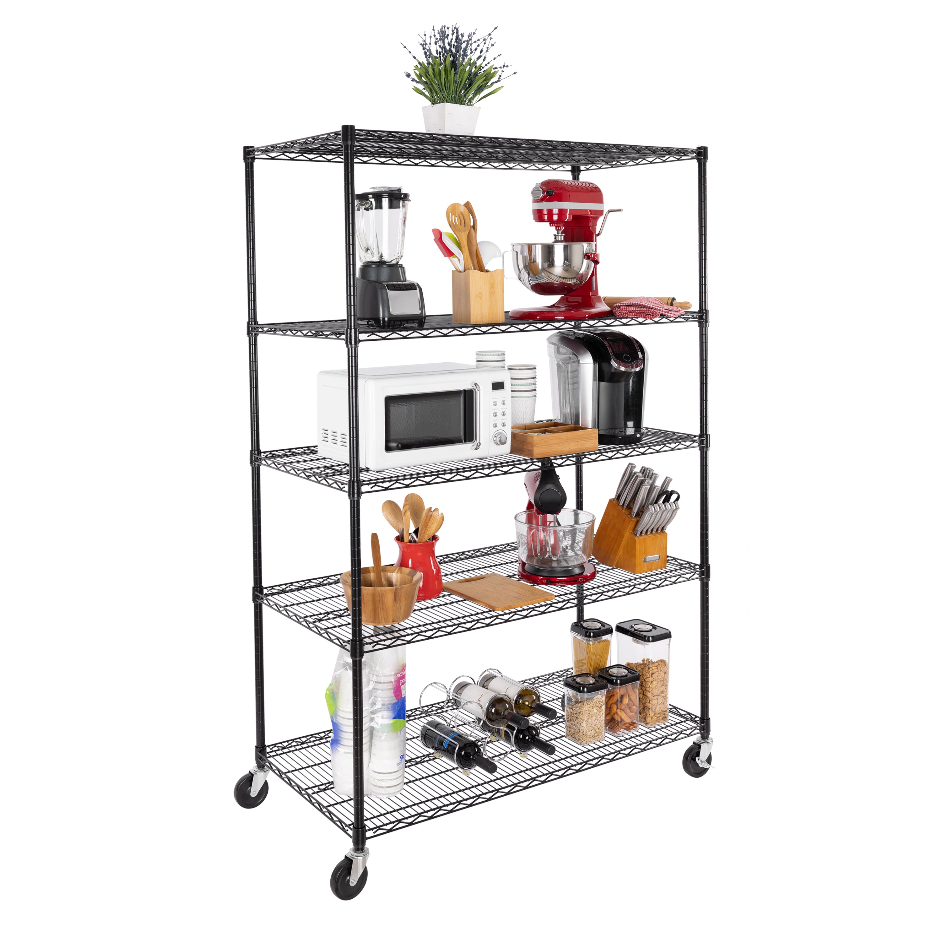- 500 lb. total weight capacity for entire shelving unit on wheels