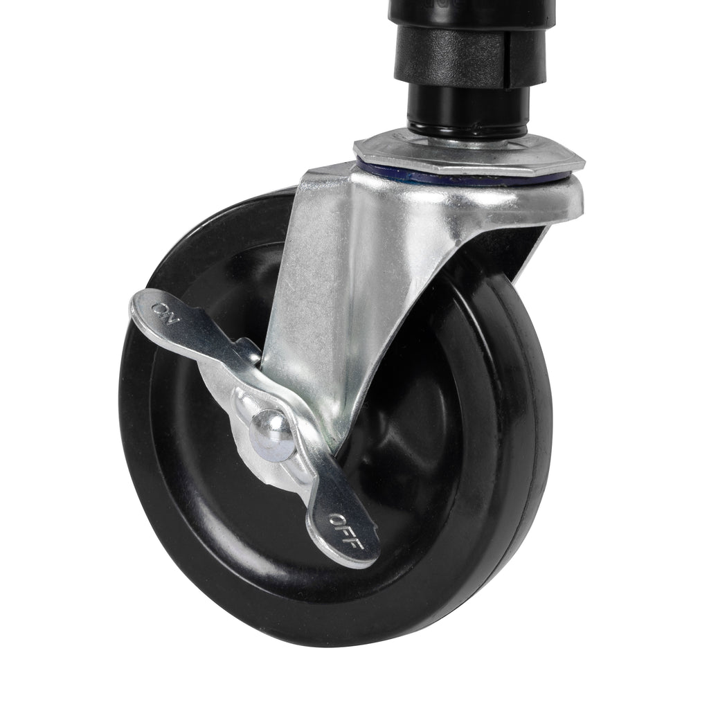 - Four 4" diameter heavy-duty rubber wheels (2 locking) with metal hardware