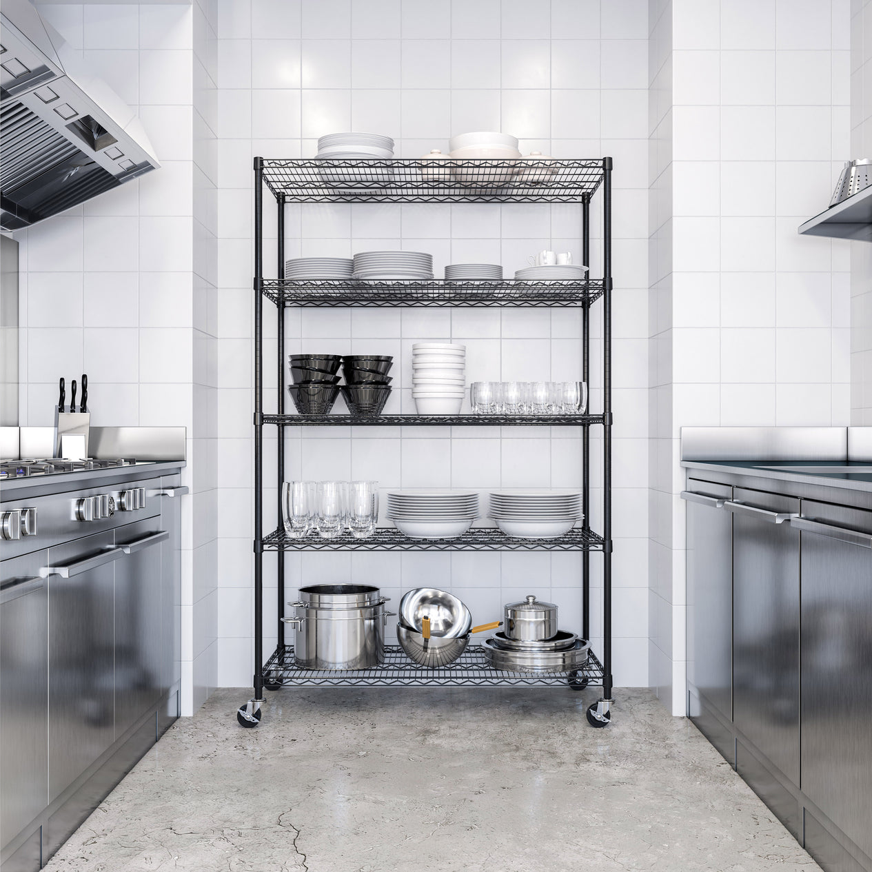 UltraDurable® 5-Tier NSF-Certified Steel Shelving, Black