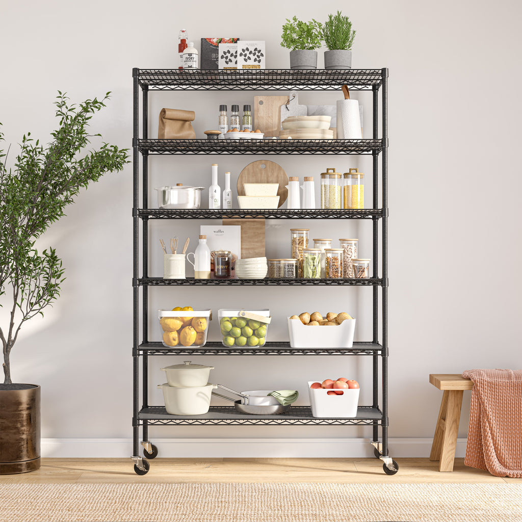 - 6 heavy-duty steel wire shelves - height adjustable at 1" increments