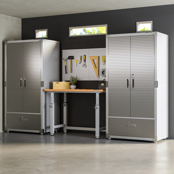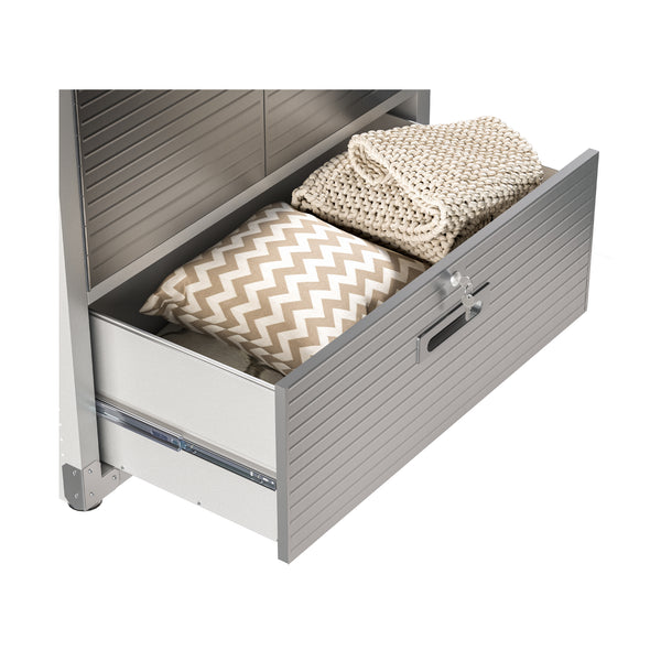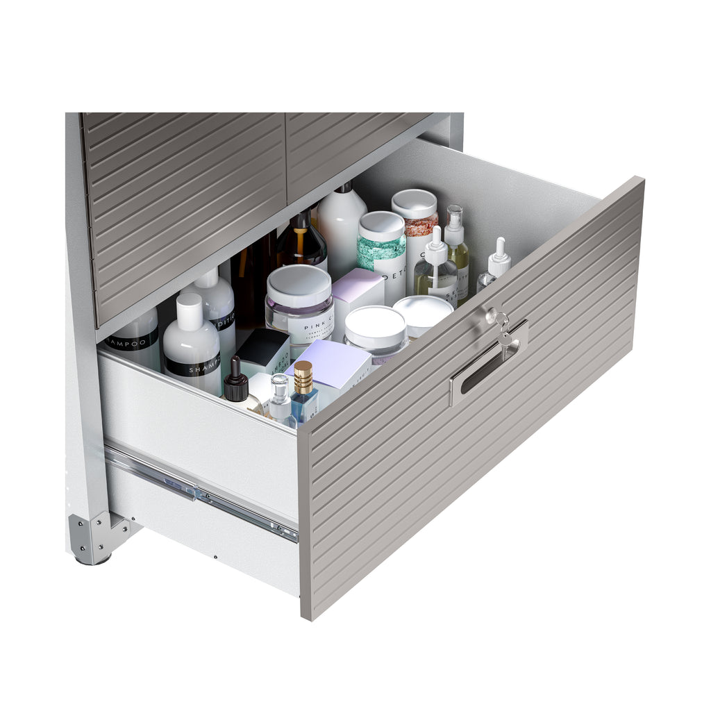 - Total weight capacity: 505 lb. (150 lb. per shelf, 50 lb. for drawer)