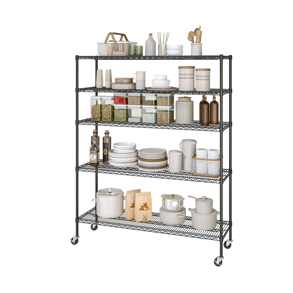 - 5 heavy-duty steel wire shelves - height adjustable at 1" increments