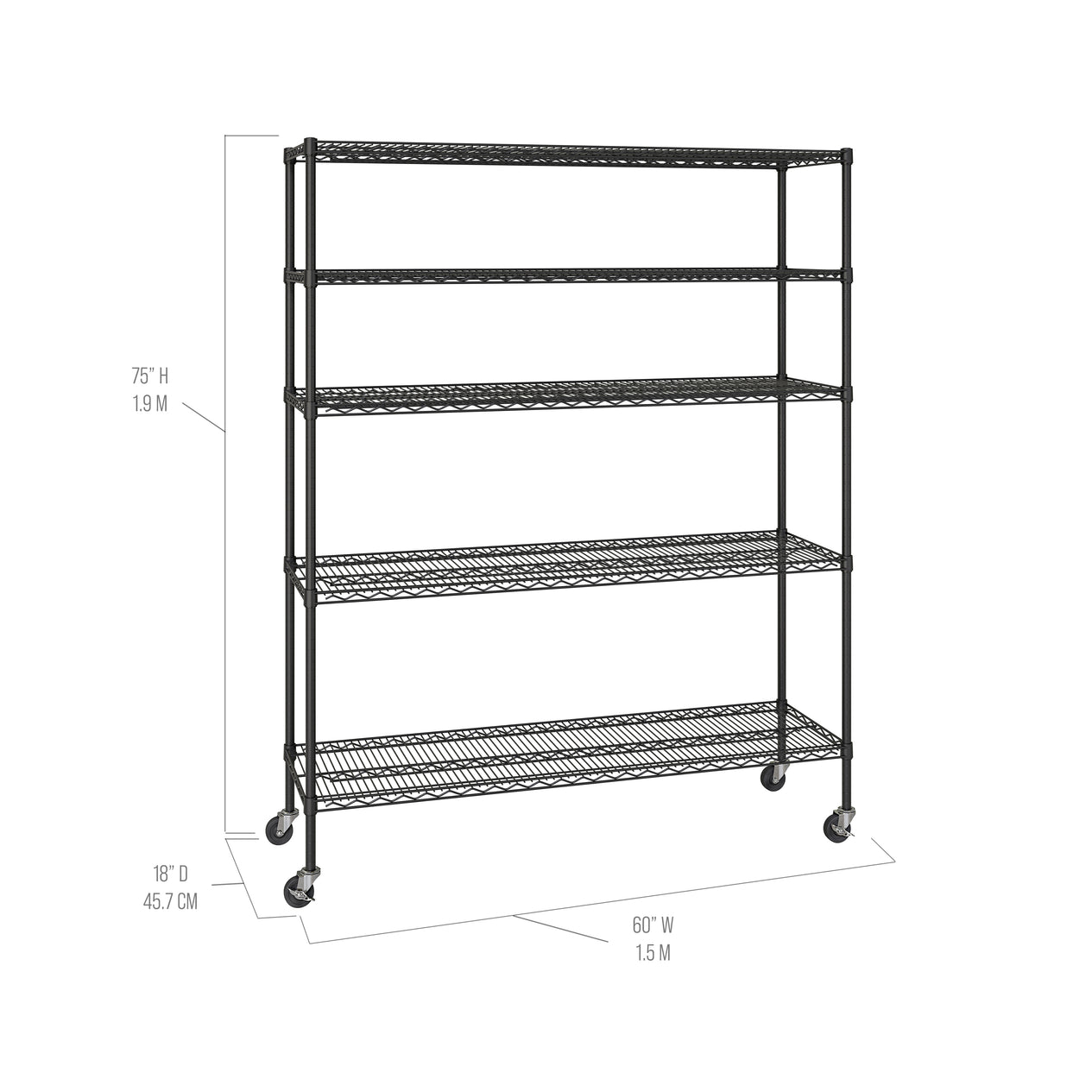 - 5 heavy-duty steel wire shelves - height adjustable at 1" increments