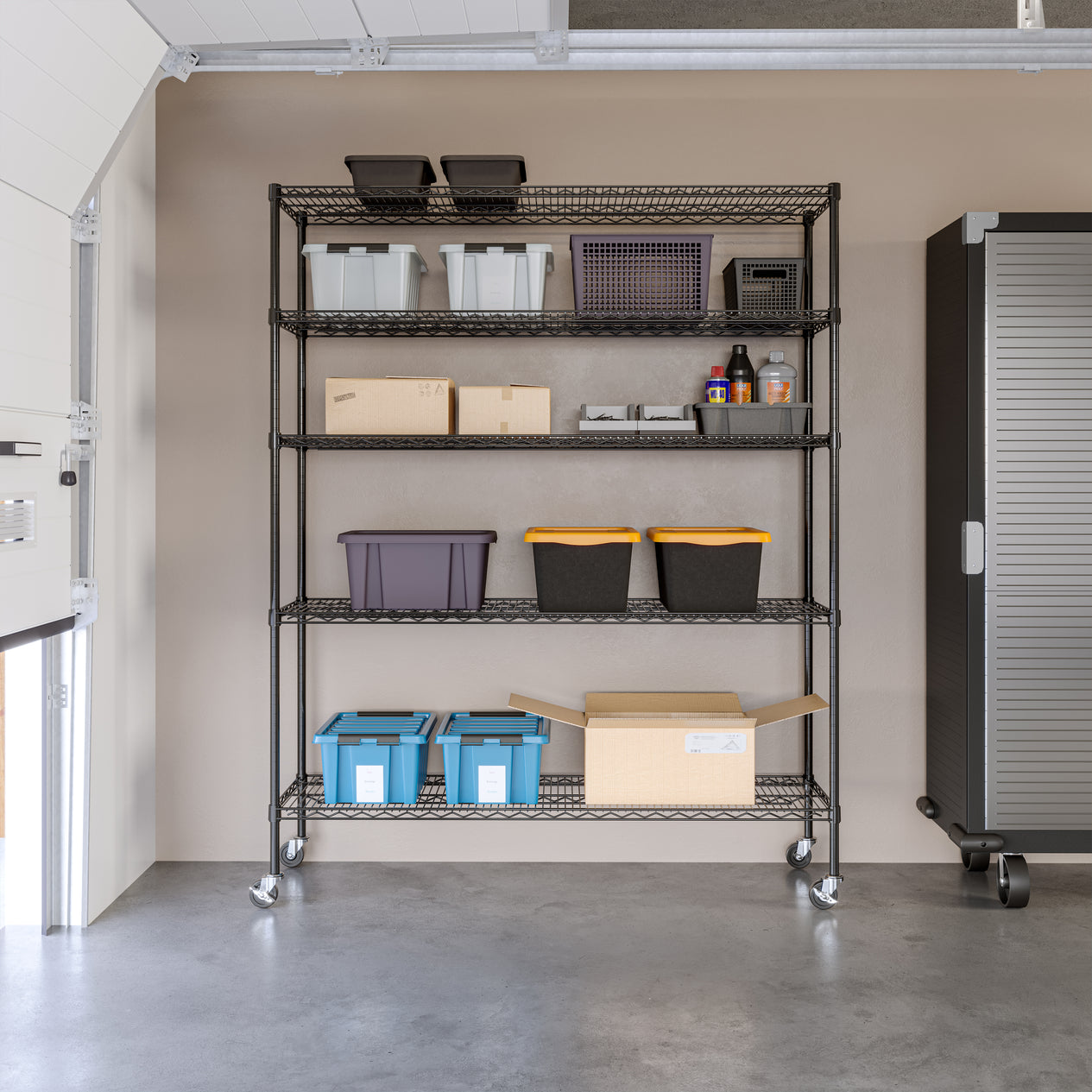 - 500 lb. total weight capacity for entire shelving unit on wheels